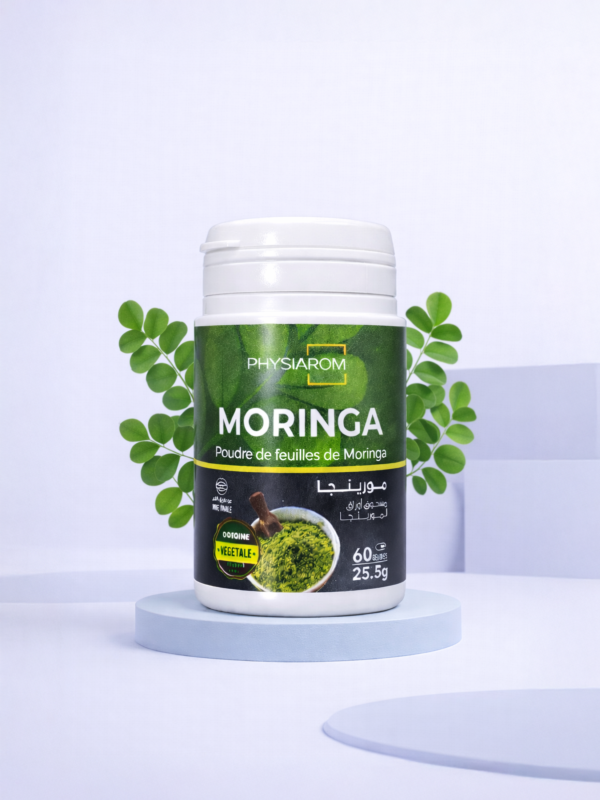 PHYSIAROM MORINGA est un complément alimentaire à base de poudre de feuilles de moringa Oleifera. Son potentiel nutritionnel est lié à sa composition particulièrement riche en antioxydants et composés végétaux bioactifs.